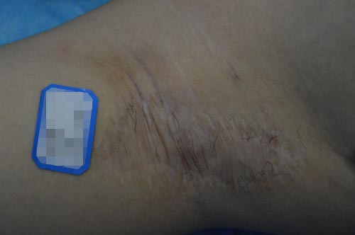 手術後的疤痕隨着時間顏色慢慢變深,形成灰色,暗褐色的疤痕。